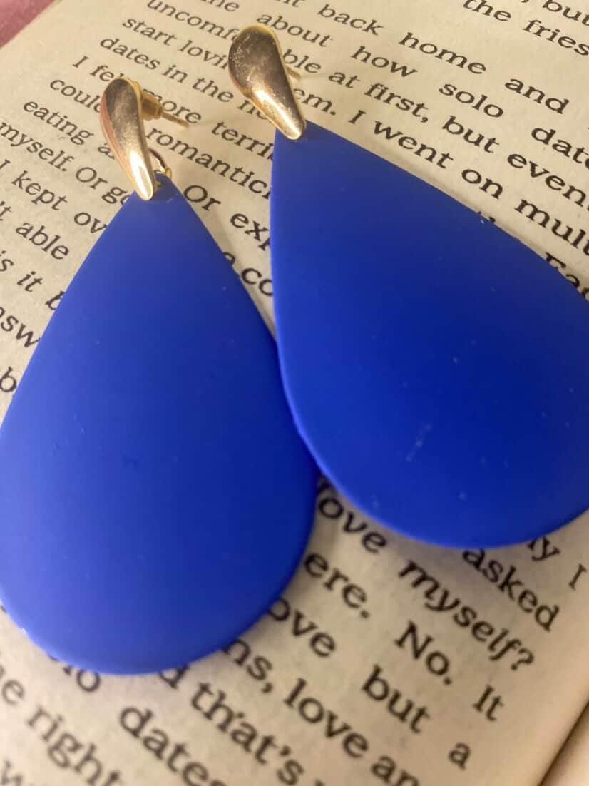Add a pop of color to your outfit with these beautiful blue teardrop earrings. Not only do they sparkle with elegance, but their unique shape also gives a stylish and modern look.